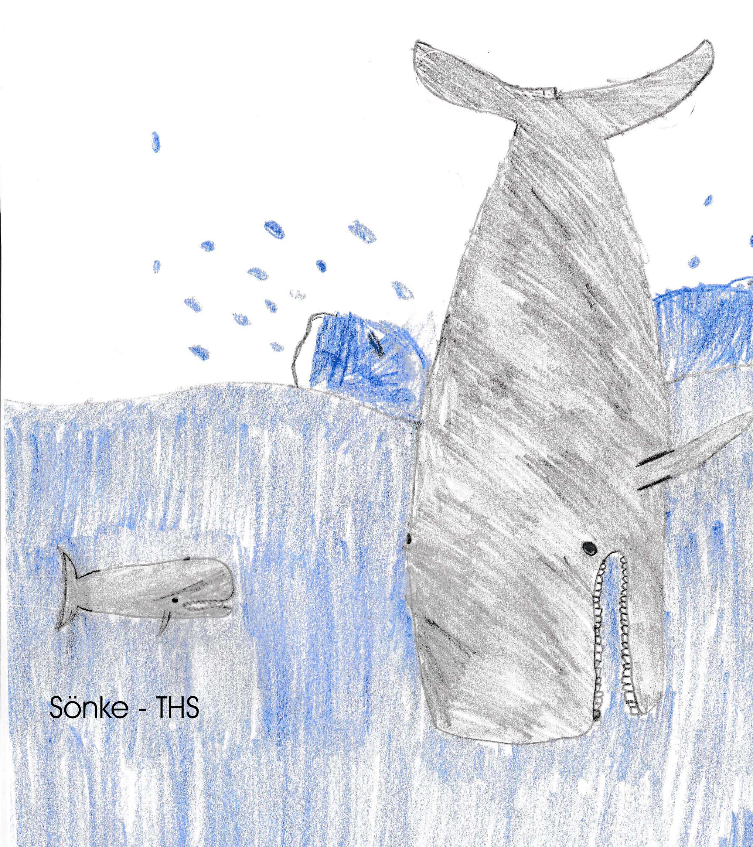Helene hörte auf einmal quietschende Laute und da waren drei kleinere Wale da.